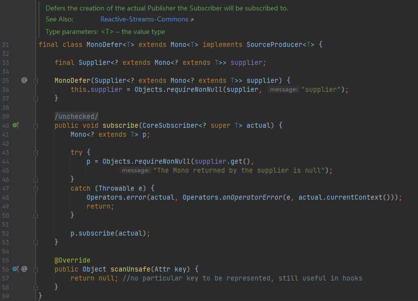 MonoDefer 虽然也是发布者,但是他只是在真正的发布者和订阅者之间做一个承载的作用