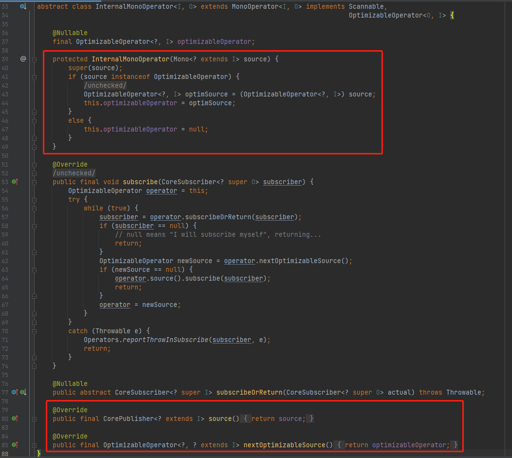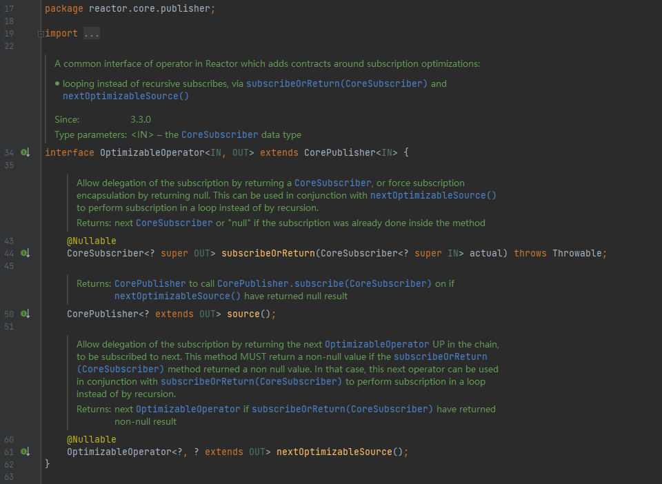 首先 OptimizableOperator 继承了 CorePublisher,这没什么可说的,因为不管是使用 Mono 还是 Flux 执行完任何操作之后返回的依旧是一个 Publisher