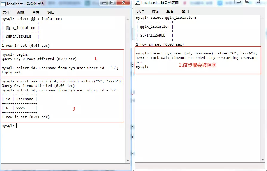 - 在 SERIALIZABLE 级别下再运行一下 上述的demo